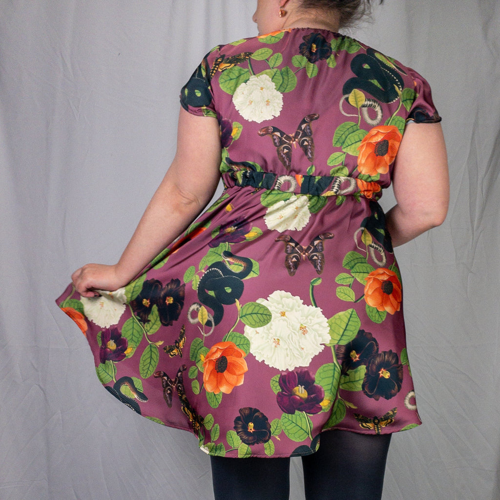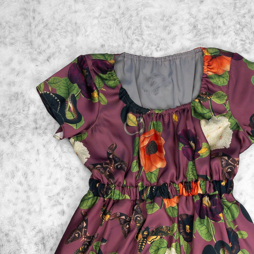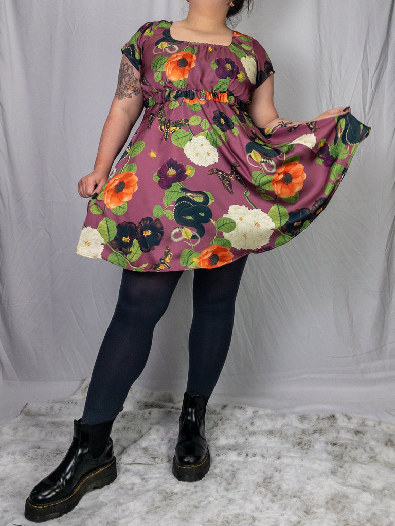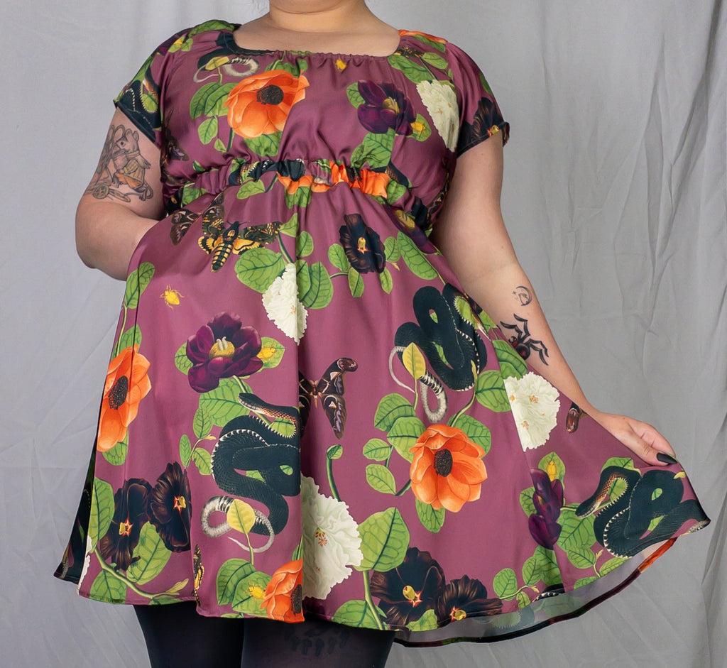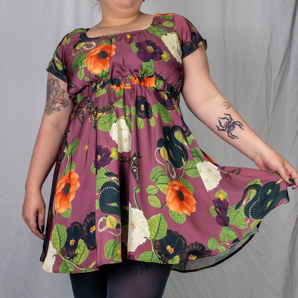 The Trixie Babydoll Dress is the perfect combination of comfort and style. It features a faux silk fabric with a unique botanical print, an empire waist, a flowy skirt, and of course it has POCKETS! With no zippers, this easy pull-over dress provides you with an effortless look and all-day comfort.
